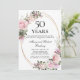 Elegante modelo de convite de aniversário de casamento de 50 anos apresenta uma moldura dourada e dois arranjos de rosas cor-de-rosa. Todo o texto é editável.