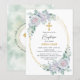 Convite Elegante Rosa Floral Dourado Cruz Baptism