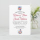 Convites de casamento com flores de rosa empoeirada e folhas de eucalipto verde suave. Folhas douradas. Borboletas azuis.