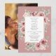 Convite Elegante Rosa Poeirento Floral Foto de Noiva Doura