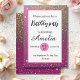 Convite Elegante rosa quente glitter dourado aniversário f