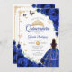 Convite Elegante Rosa Real Azul-Chic Dourado Quinceanera