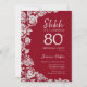 Convite Elegante Rosa Red Silver Surprise 80 Birthday