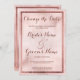 Um moderno pincel de tinta rosa e rosa dourado pincelada elegante Casamento muda o cartão de data. Este luxo convite moderno é perfeito para qualquer garota clássica e sofisticada. Este design é perfeito para um evento de tendências e na moda. Personalize este design com sua própria mensagem e informações personalizadas. Todas as designs são impressas.