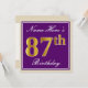 Convite Elegante, Roxo, Faux Dourado 87º Aniversário + Nom