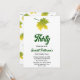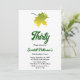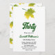 Este elegante convite de aniversário de outono é perfeito para um aniversário de outono moderno. A simples design apresenta folhas verdes de outono com elegante tipografia preta e verde sobre fundo branco.