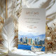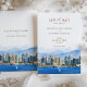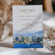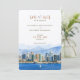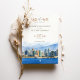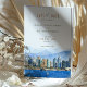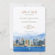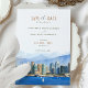 Anuncie o seu próximo casamento com este sofisticado convite "Salve-a-Data" com o espetacular horizonte de San Diego, Califórnia. O cartão mostra uma bela ilustração aquática da paisagem vibrante da cidade de San Diego, colocada contra o pano de fundo do sereno oceano Pacífico e das montanhas majestosas. O texto é apresentado elegantemente numa mistura de fontes clássicas de serifa e guião, usando cores como ouro mudado, verde-oliva e terra quente. Perfeito para casais planejando um casamento costeiro contemporâneo, este convite captura a essência do charme de San Diego com elegância artística.