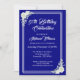 Faça sua celebração de 50 anos se destacar com nossos Convites de festas de aniversários femininos elegantes. Essas cartas lindamente projetadas apresentam um fundo azul tranquilo com uma linha branca tripla clássica e rosas brancas refinadas nos cantos. O roteiro elegante para a "50ª Celebração de Aniversário" e a letra serif simples para os detalhes tornam a personalização fácil e na moda. Perfeito tanto para a família como para os eventos, esses convites também oferecem um espaço nas costas para qualquer informação extra. Celebrar um marco com a mistura perfeita de elegância.