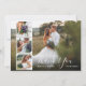 Este elegante cartão de agradecimento apresenta 4 fotos personalizadas para que você possa adicionar as fotos do seu casamento. Diga obrigado a todos os seus convidados por fazerem parte do seu grande dia. Na frente do design temos uma grande foto como fundo com três fotos quadradas empilhadas no lado esquerdo. No verso deste modelo há uma mensagem de agradecimento personalizável em uma mistura de letras modernas e escrita à mão. Se preferir escrever suas mensagens à mão, basta excluir o texto que não é necessário. No topo, incluímos o endereço de devolução do casal recém-casado.