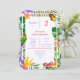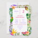 Este convite à bolsa mensageifesta de aniversario elegante tem um bonito padrão tropical de Verão com frondes de palmeiras verdes e folhas de monstera. Pássaro de flores do Paraíso em matizes laranja, azuis e roxas e são pintadas entre um belo papagaio e borboletas delicadas. Você pode alterar facilmente o Nome, a Idade e outros detalhes da parte clicando no botão "Personalizar".