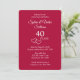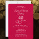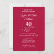 Personalize este convite de festa de aniversário de casamento de 40 anos, simples e elegante, adicionando os nomes do casal e os detalhes da festa. Meus corações entrelaçados originalmente desenhados acentuam o texto moderno e estiloso "40 Anos". Personalize este cartão vermelho rubi com tipografia da moda para seus objetivos. Você também pode alterar o número para um aniversário de 25 anos personalizado, ou aniversário de casamento de 10 anos, 50 ou 60 anos ou qualquer aniversário. Este seria um convite de festa de aniversário de casamento romântico encantador. Veja minha coleção para decoração de mesa e artigos de vidro para casamento de 40 anos, vermelho rubi.