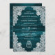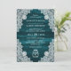 Convite Elegante Teal Wood Floral Lace Mason Jar Wedding