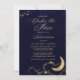Uma Noite sob as estrelas, convite de aniversário da quinceanera. Lua azul e dourada marinho e estrelas