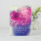 obra de arte aquarela de flores rosa e borgonha chic em belo vaso azul e tipografia lar doce lar Convite de Casamento.