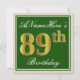Convite Elegante, Verde, Faux Dourado 89º Aniversário + No