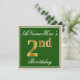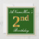 Este design de convite simples e bolsa mensageifesta de aniversario elegante apresenta uma mensagem personalizada, como "segundo aniversário de ANameHere" (com o "segundo" com aparência falsa/imitação de cor dourada), dentro de uma área quadrada de cor verde, com um contorno de fronteira simples. O nome está em um texto elegante, de cor branca, semelhante a script, e pode ser personalizado. A parte traseira apresenta detalhes de convite personalizáveis. Um convite de aniversário como este poderia talvez ser usado ao convidar pessoas para uma festa de aniversário em prisão preventiva para alguém que comemora seu segundo aniversário. [~Z0000225]