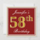 Estas características simples e da bolsa mensageifesta de aniversario elegante do convite de design uma mensagem personalizada como de "aniversário Jennifer o 58th" (com "58th" tendo o falso/imitação ouro-como o olhar da coloração) dentro de uma área quadrada vermelho-colorida que caracteriza um esboço de beira simples. O nome em um elegante branco-é colorido roteiro-como o texto, e pode ser personalizado. As características traseiras personalizaram detalhes do convite. Um convite de aniversário como este poderia talvez ser usado ao convidar pessoas a uma festa de aniversário que está sendo guardarada para alguém que está comemorando seu oitavo aniversário cinqüênta. [~Z0000227]