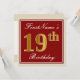 Convite Elegante, Vermelho, Faux Dourado 19º Aniversário;