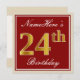 Convite Elegante, Vermelho, Faux Dourado 24.º Aniversário;