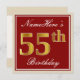 Convite Elegante, Vermelho, Faux Dourado 55.º Aniversário;