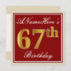 Convite Elegante, Vermelho, Faux Dourado 67º Aniversário;