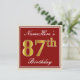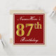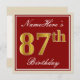 Convite Elegante, Vermelho, Faux Dourado 87.º Aniversário;
