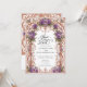 Circule seu evento especial com elegância de eterno usando este design de arco floral vintage. Apresentando flores roxas ricas entrelaçadas com o escroque fluente de art nouveau em tons quentes de cobre, este convite expele sofisticação e romance. Ideal para casamentos, aniversários, ou celebrações formais, ele fornece um quadro surpreendente que destaca seus detalhes personalizados enquanto captura um senso de beleza clássica.