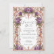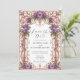 Circule seu evento especial com elegância de eterno usando este design de arco floral vintage. Apresentando flores roxas ricas entrelaçadas com o escroque fluente de art nouveau em tons quentes de cobre, este convite expele sofisticação e romance. Ideal para casamentos, aniversários, ou celebrações formais, ele fornece um quadro surpreendente que destaca seus detalhes personalizados enquanto captura um senso de beleza clássica.