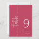 Este elegante número da mesa de casamento apresenta uma caligrafia elegante e uma letra simples de tipografia sans serif para um olhar minimalista e moderno limpo num fundo viva magenta, que é uma bela maneira de ajudar os seus convidados a encontrar o seu lugar/mesa. A simplicidade desta design adiciona um toque de elegância ao seu casamento. Funciona bem com muitos temas de casamento e, definitivamente, um excelente adicional à sua papelaria de casamento. Apenas personalize os nomes. data do casamento/evento, e número da tabela em alguns passos fáceis e personalize-o para lhe dar um belo toque pessoal. Note-se que a elegante caligrafia da expressão "mesa" e da linha e de outros elementos e trabalhos de arte gráficos não pode ser editada, suprimida ou movida. Eles estão consertados.