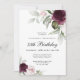 Comemore um aniversário especial de 75 anos com um belo convite de festas com as bordas florais em burgundy e rosas rosa em cada lado do texto elegantemente colocado. As cores incluem o rosa pálido pincelado, vermelho enterrado profundo e ameixa misturados com verde etéreo e minúsculas flores brancas de sotaque. Personalize o modelo de texto com suas informações. Você pode editar a idade para qualquer aniversário de idade.