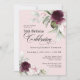 Celebre um aniversário especial com este belo convite de aniversário 50º e feminino. Apresenta elegantes bordas florais em rosas borrifadas e cor-de-rosa em cada lado do texto elegantemente colocado. As cores incluem cor-de-rosa pálido, vermelho borrado profundo e ameixa misturados com verde etéreo e minúsculas flores brancas de sotaque num fundo rosa feminino. Personalize o modelo de texto com suas informações. Você pode editar a idade para qualquer aniversário de idade.