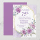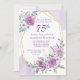 Elegante Watercolor Purple Floral 75º Convite de aniversário com estrutura dourada em rosas e flores bonito roxas e lavandas.
