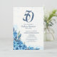 Convite Elegante Winter White Blue Flowers 50º aniversário