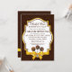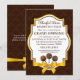 © Socialite Designs. O nosso convite de elegante padaria tem um fundo damasco castanho chocolate, um belo banner de texto com dourado e castanho, três cake pops e um design de fita e laço de cetim dourado falso. Se você precisar de AJUDA para personalizar este convite de inauguração para o seu evento, por favor não hesite em contactar Socialite Designs com os seus requisitos.