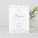 Com delicados corações de prata em um fundo azul elegante, você pode personalizar esses convites elegantes com os detalhes especiais do batismo ou batizado em tipografia sofisticada. Criado por Thisisnotme©