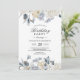 Celebre com estilo com este convite de aniversário elegante com tema de inverno, apresentando delicadas flores azuis e brancas em aquarela, sutil realce bege e verde botânico suave. A refinada obra de arte floral emoldura um layout harmoniosamente equilibrado com tipografia clássica serifada e manuscrita, criando um visual sofisticado e atemporal, adequado para todas as idades.