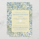 NewParkLane - Convite de Festa de Formatura Elegante, apresentando um padrão floral vintage de pequenas sincelas azuis, flores maiores esbranquiçadas e folhas de acanto verde suave, do artista do século XIX William Morris (1834-1896), com uma moldura amarela suave para seus textos, tudo em tipografia de roteiro elegante. Design fofo para uma celebração de formatura na primavera.