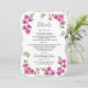 Este cartão de informações para convidados personalizável foi projetado para combinar com nossa coleção de casamento "Orquídeas roxas delicadas". O design moderno e clássico inclui delicadas orquídeas tropicais em rosa e roxo, elementos de folhagens e galhos. Economize papel incluindo informações detalhadas no verso do convite em vez de em um cartão separado. Inclua também informações de RSVP se o seu convidado estiver respondendo eletronicamente (opcional). Clique em "Detalhes" para alterar os detalhes. Veja outros produtos com este design para sua celebração. Veja outros produtos semelhantes da OliaArtPositiv.