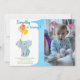 Elefante Bonito com Balões no Primeiro Convite de Aniversário a azul.