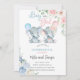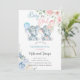 Convite Elephants gender reveal invite, pink blue flowers.