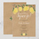 Com limões e folhagens, este convite de chuveiro de casal botânico rústico boho pode ser personalizado com as informações do seu evento especial e suas iniciais de monograma no verso. Projetado por Thisisnotme©