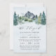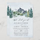 Design apresenta uma elegante paisagem de montanha de aquarela com um layout de texto de estilo moderno. Ver versões de alternativo deste convite e itens de conjunto correspondentes no link de coleção encontrado nesta página.