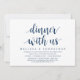 Script moderno no Classy Marinho Blue temed, cartão de convite para elopementos de casamento (Jante conosco, The Newlyweds). É perfeito para seu janto casual de casamento, dança e festa.