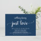 Marque o começo de sua eternidade com elegância usando nossa clássica russa contemporânea, azul-marinho azul, tema elopemento de casamento, convite para celebração, "Nada de Rico Apenas Amor". Perfeito para os casais estendendo sua alegre ocasião, este convite exude sofisticação com uma sugestão de brincadeira, definindo o palco para um evento memorável. Adorado com um tema design de roteiro moderno de eterno, ele adiciona um toque de encanto refinado às suas festividades. Feito por TeeshaDerrick, este convite promete capturar maravilhosamente sua história de amor.