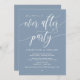 Linda Caligrafia Moderna, Anúncio de Elopemento de Casamento, Cartão de Convite (Felizmente Nunca Depois da Festa). Isto é perfeito para a sua recepção de casamento e festa de celebração de posto. Adicione seus detalhes em fontes / letras correspondentes. Tema de azul empoeirado. #TeeshaDerrick