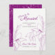Convites de casamento com desenho botânico de gladíolo feito à mão em arte linear simples em branco e roxo amora. Outros itens correspondentes disponíveis. © Desenho e design original por Sarah Trett www.sarahtrett.com para www.mylittleedenweddings.com