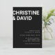 Convite em preto e branco com letras minimalistas