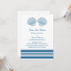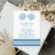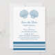 Prateleiras do Mar Náutico Elegantes e clássicas Salvem o Anúncio de Data com um par de conchas simples e um conjunto de faixas em azul e branco marinho escuro. Este tema de praia náutica, exceto a data, pode ser facilmente personalizado com seus detalhes de casamento. Para obter mais opções de personalização, clique no botão Personalizar Ti.