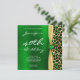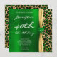 Crie seus próprios convites de aniversário personalizáveis para fabuloso aniversário de 40 anos ou outra celebração especial. À esquerda, a sala de crio para o seu convite, é um gráfico brilhante, verde, de papel esfregado, estilo de papel digital. À direita está um gráfico de folhas de papel amarelo brilhante e esmeralda verde-leopardo. Os dois blocos são separados por uma fita decorativa de cetim de ouro amarelo esmeralda vertical com uma imagem de pedra magnética do coração de diamante esmeraldo. As joias de diamante do estilo luxo, brilho e rocha são criadas com gráficos digitais impressos. Esmeralda glamourosa, limão, verde, amarelo, bronzeado, ouro, preto e branco convida para seu evento especial.