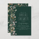 Convide convidados para comemorar em estilo este chá de panela de flor selvagem em verde-esmeralda rico. Com flores pintadas à mão e sotaques boêmicos, este design combina encanto rústico com elegância de eterno. Perfeito para festas de jardim, chás ao ar livre ou celebrações inspiradas na natureza, o layout destaca seus detalhes de evento enquanto adiciona um toque chic, romântico.
